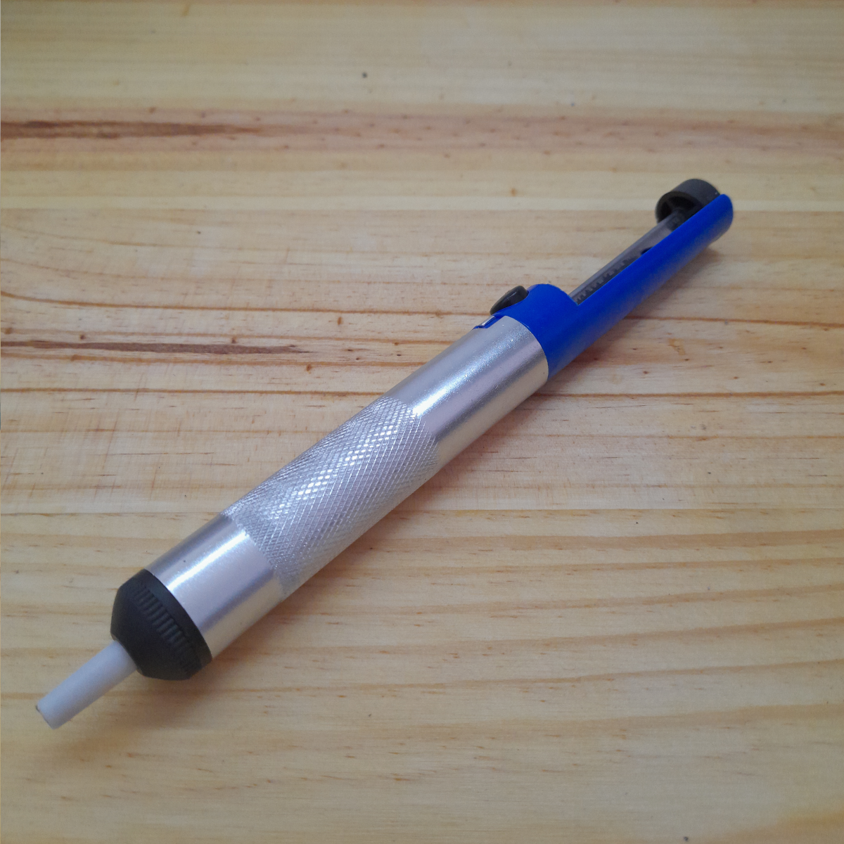 Sometimes, ou will find yourself in a situation where you need to re-solder a component or switch it with another one. Then a solder sucker comes in handy, by removing the solder from the previously soldered pad or mounting hole. This allows for easy installing of the replacement part.