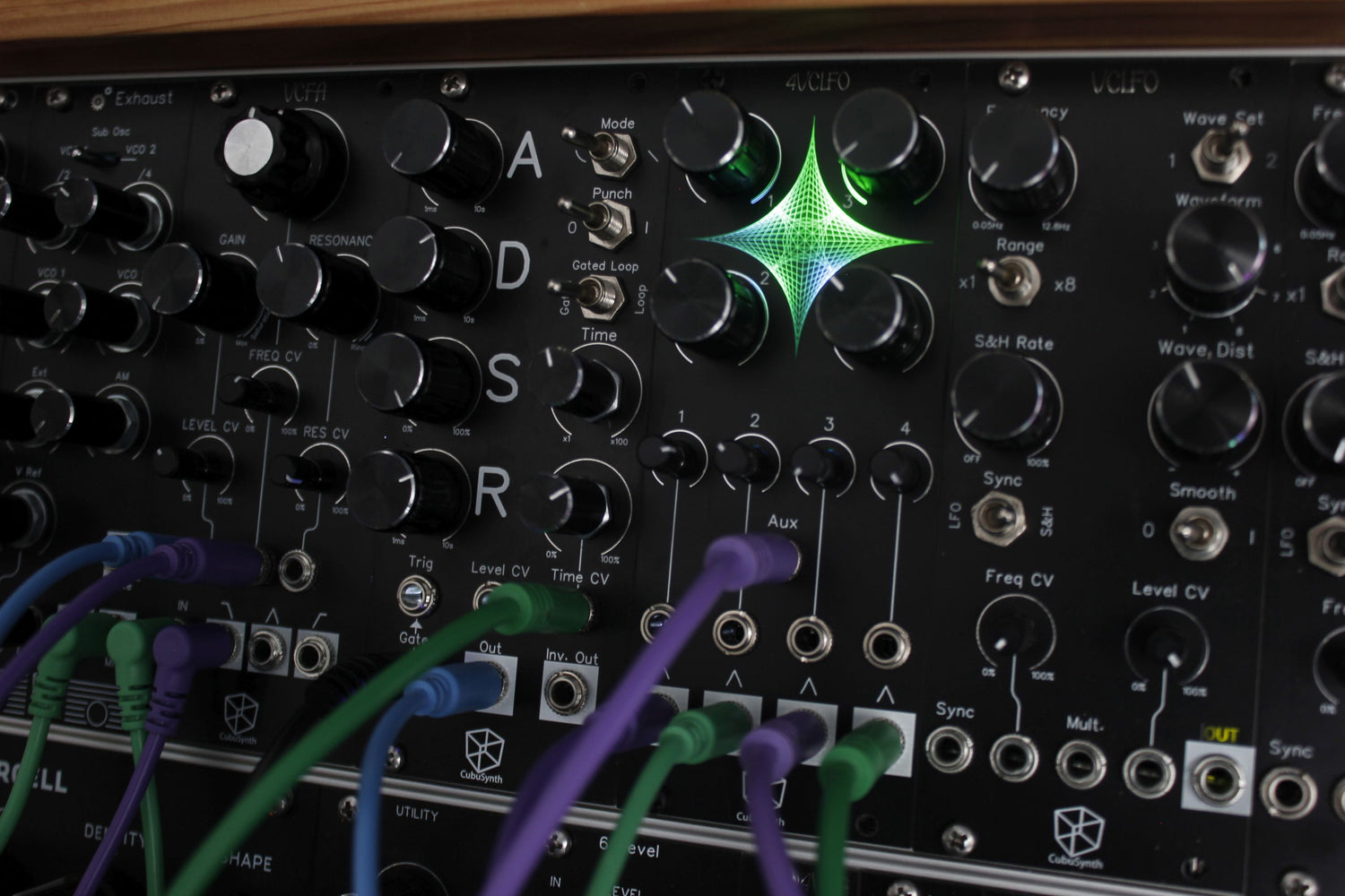 The Cubusynth Engine features 2 VCO´s in one module, it has 14 different outputs, giving you many possibilities of creating your sounds.