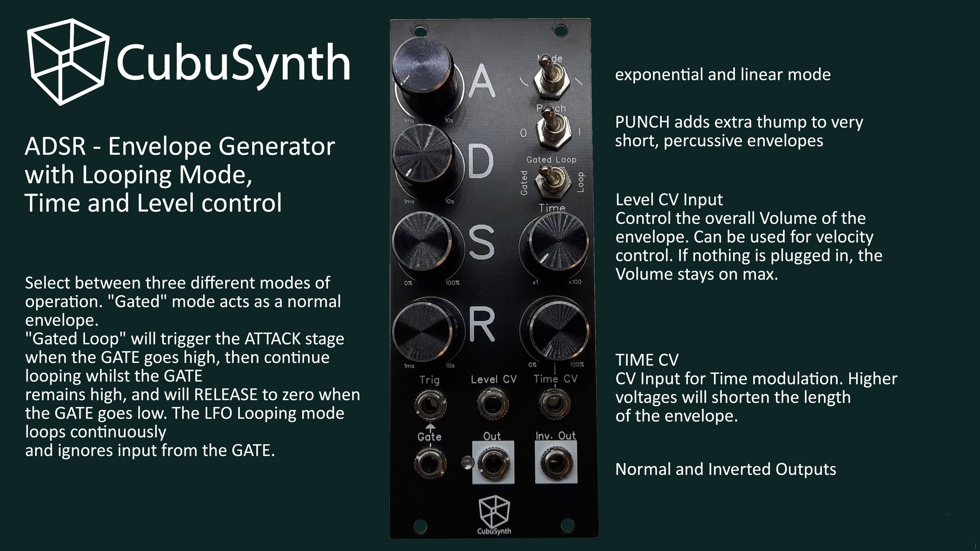 - MODE CV that allows selection of normal ADSR, Gated looping, or full LFO-style Looping mode