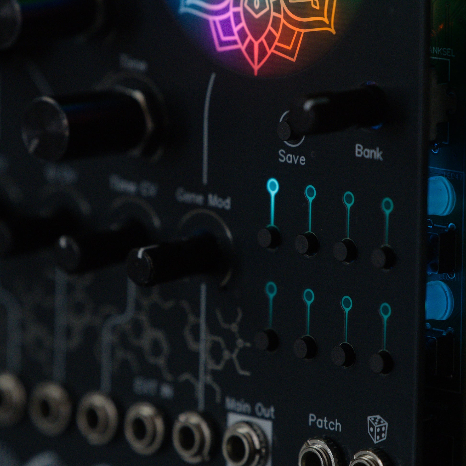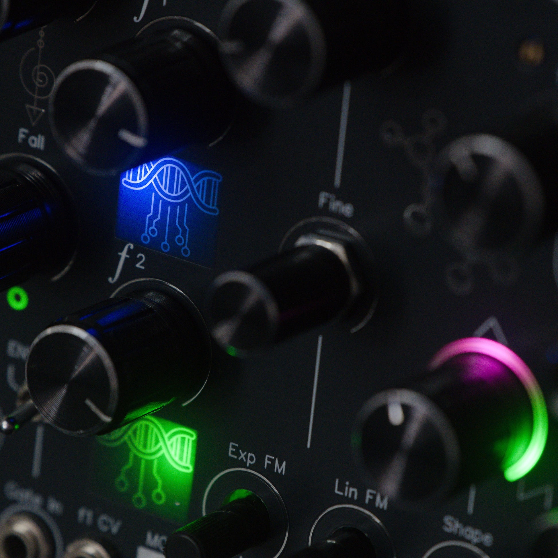 Inspired by a fictional "DNA synthesis" concept, the ARKARION interprets a virtual genetic code to define routing schemes for CV and audio. This allows complex, evolving sound design with minimal patching.