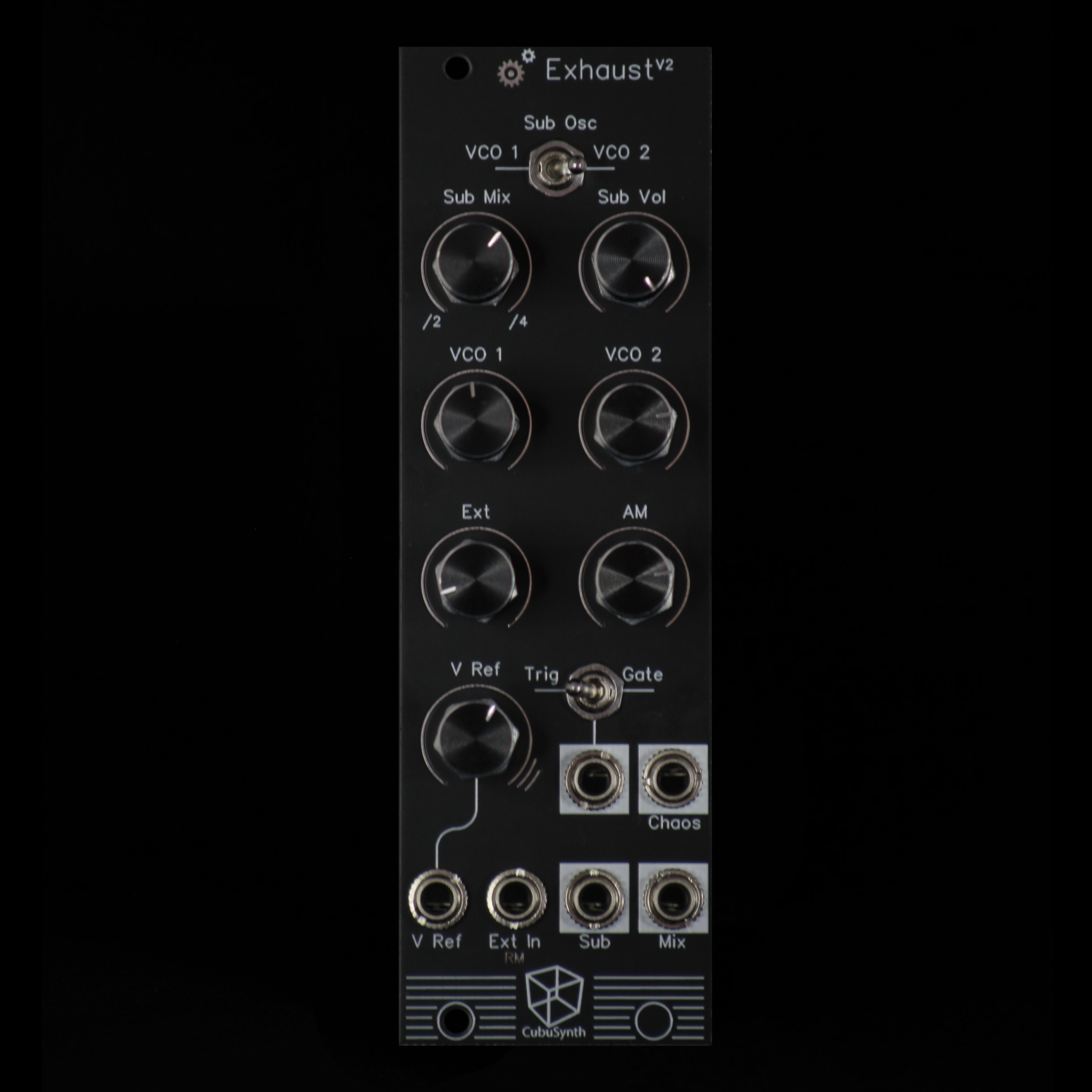 The Exhaust adds many features to your Engine VCO module like Sub-octaves, Mixing and a Gate / Trigger generated by the Chaos signal.